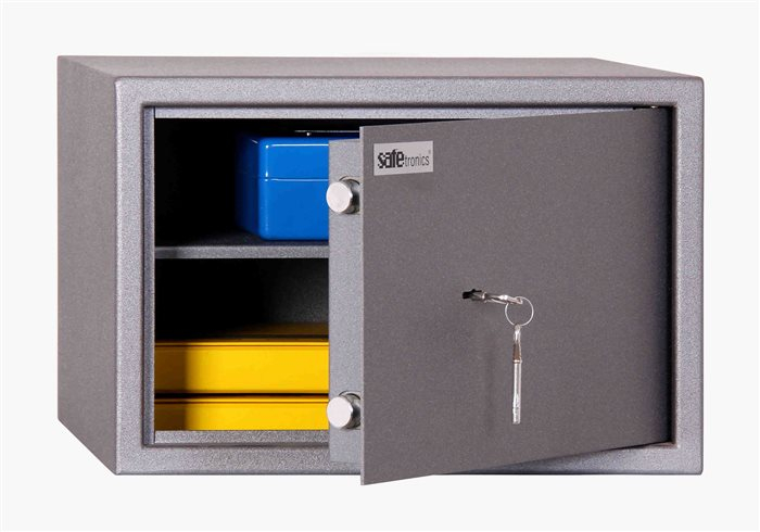 Nábytkový sejf ZSL 28 díky dostatenčnému objemu vhodně uschová Vaše dokumenty, cennosti nebo hotovost. Zároveň je také vhodný pro uložení krátkých zbraní a střeliva díky certifikátu získanému ve státem akreditované zkušebně. Uvnitř sejfu je jedna vyjímatelná police. Sejf je osazen trezorovým zámkem na klíč(součástí jsou 2ks klíčů). Vzhledem k velikosti a hmotnosti je samozřejmě velmi důležité sejf řádně ukotvit. Kotevní otvory jsou připraveny jak v zadní stěně, tak do spodní strany sejfu (průměr otvorů 10mm). Základním barevným provedením je granit/bronze.