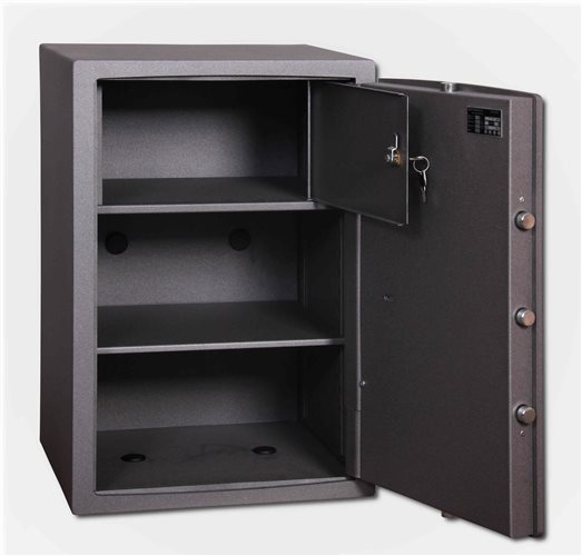Praktickýtrezor řady NTRsmechanickým kombinačním zámkem, vnitřní schránka je uzamykatelná klíčem (Eurolock). Je velmi praktický, může být dobře ukryt např. ve vestavěné skříně, aby nebyl tak zbytečně na očích. Vhodný k uložení cenností, hotovosti, dokladů a listin formátu A4. Kvalitní a praktický trezor za nejlepší cenu scertifikátem úrovně mechanického zabezpečení uschovaných předmětů důležitým pro případy eventuálního jednání spojišťovnou či třeba vpřípadě úschovy zbraní a střeliva.Vzhledem kvelikosti a hmotnosti je samozřejmě velmi důležité náležitě sejf ukotvit kpevnému materiálu. Z výroby připraven na kotvení ke zdi (2 otvory) + k podlaze (2 otvory).Základním barevným provedením je granit. Uvnitř trezoru jedna vyjímatelná police a součástí výrobku jsou 2ksklíčů.