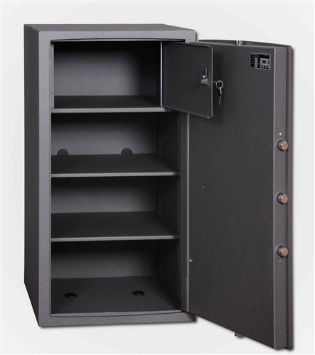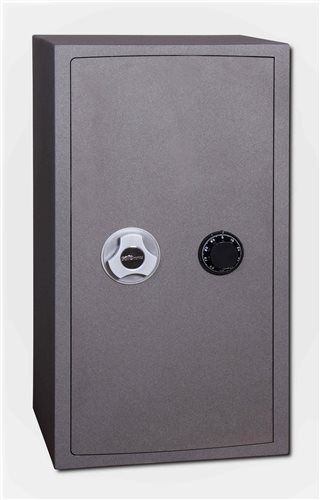 Praktickýtrezor řady NTR smechanickým kombinačním zámkem, vnitřní schránka je uzamykatelná klíčem (Eurolock). Je velmi praktický, může být dobře ukryt např. ve vestavěné skříně, aby nebyl tak zbytečně na očích. Vhodný k uložení cenností, hotovosti, dokladů a listin formátu A4. Kvalitní a praktický trezor za nejlepší cenu scertifikátem úrovně mechanického zabezpečení uschovaných předmětů důležitým pro případy eventuálního jednání spojišťovnou či třeba vpřípadě úschovy zbraní a střeliva.Vzhledem kvelikosti a hmotnosti je samozřejmě velmi důležité náležitě sejf ukotvit kpevnému materiálu. Z výroby připraven na kotvení ke zdi (2 otvory) + k podlaze (2 otvory).Základním barevným provedením je granit.Uvnitř trezoru jsou dvě vyjímatelné police a součástí výrobku jsou 2ksklíčů.