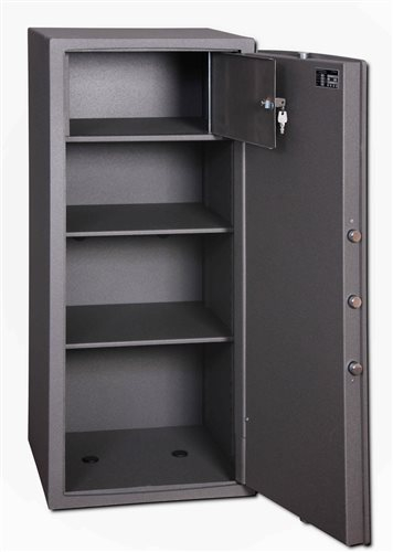 Nábytkový trezor NTR-100 M jeprodlouženou verzí trezoru NT/R 61 M a je standardně dodáván se dvěma vyjímatelnými a výškově stavitelnými policemi. Ovládá se mechanickým klíčovým zámkem MAUER.Znábytkových trezorů řady NT/R se stal velmi rychle nosný sortiment. Zdá se, že se jinému výrobci nezdařil tak skvělý poměr „cena/užitná hodnota“. Jedná se otypy smnoha výhodami jako např. snadná manipulace, certifikace každé varianty, osazení různými zámky, výhodný poměr vnitřního a vnějšího objemu a další…Tuto typovou řadu považujeme vposledních letech za nejúspěšnější. Přispívá ktomu fakt, že řada NT/R je vhodná jak do bytů a domácností, tak do kanceláří ina přepážky. Navíc je tato řada vhodná kbezpečnému uložení zbraní. Základní kotvení kpodlaze a ke zdi. Základním barevným provedením je granit.