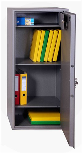Nábytkový sejf ZSL 120díky svému nadstandardnímu objemu vhodně uschová Vaše dokumenty, cennosti nebo hotovost. Zároveň je také vhodný pro uložení krátkých zbraní a střeliva díky certifikátu získanému ve státem akreditované zkušebně.Uvnitř sejfu jsou dvě vyjímatelné a výškově stavitelné police a jedna uzamykatelná schránka.Užitná výška vnitřní uzamykatelné schránky je 14 cm. Rozměr dvířek vnitřní uzamykatelné schránky je 10,5×32 cm.Sejf je osazen trezorovým zámkem na klíč(součástí jsou 2ks klíčů). Vzhledem k velikosti a hmotnosti je samozřejmě velmi důležité sejf řádně ukotvit.Kotevní otvory jsou připraveny jak v zadní stěně, tak do spodní strany sejfu(průměr otvorů 10mm). Základním barevným provedením je granit/bronze.